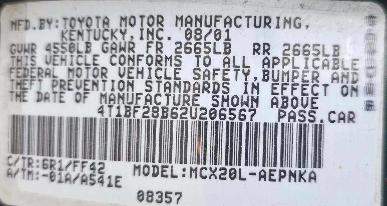 4T1BF28B62U206567